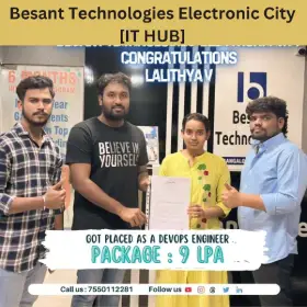 Besant Technologies Software training institute in Electronic City Bangalore has been launched in the year of 2018. Now we are having many branches all over India. Besant Technologies is the best software training institute in Chennai and Bangalore with having 20000+ students for each top course. We focus on all IT courses and also for the digital courses related to business administration. Our training institute having the best and experienced professional trainers who are having many years of experience in the software field industry as the developer, designers, programmer, debugger and a lot of fields.