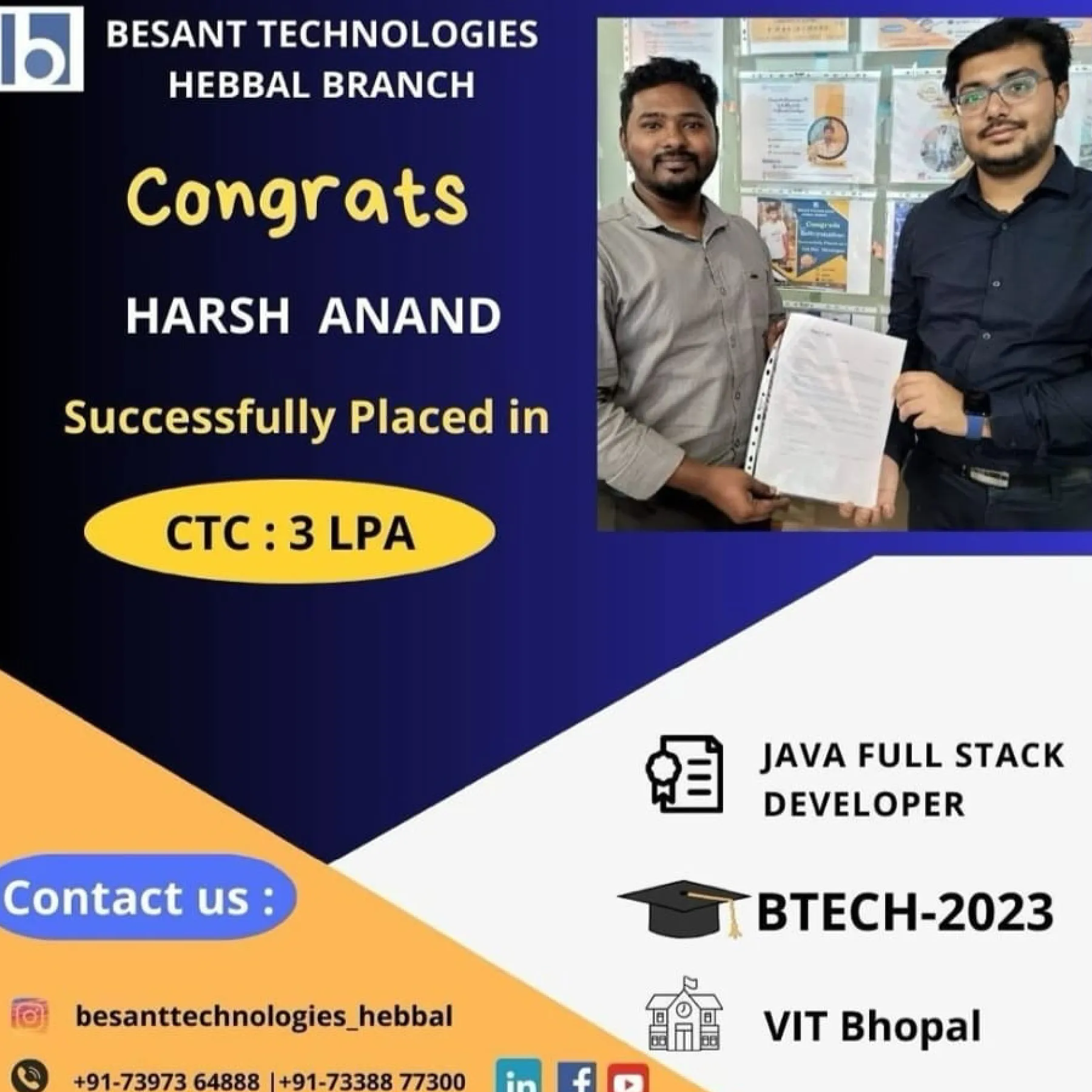 Besant Technologies Training institute in Hebbal, Bangalore has been launched in the year of 2018. This is our 18th branch in Bangalore and also has many branches all over Chennai and Bangalore. Besant Technologies is the top training institute in Chennai and Bangalore with having 200+ learners for each topmost course. We concentrate on all IT software courses and also for the marketing courses related to business administration.