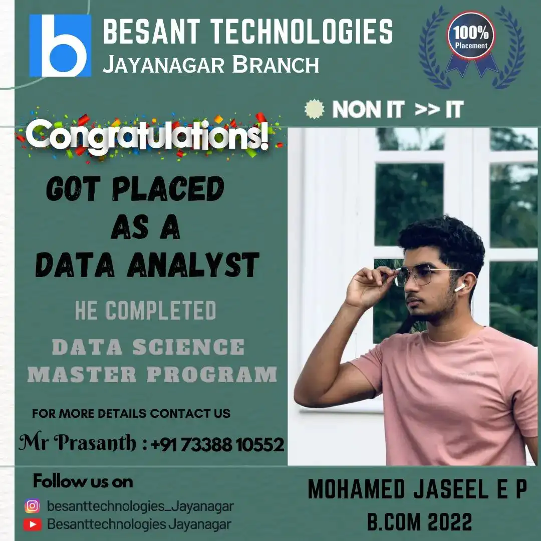 Walk-in to our Besant Technologies Jaya Nagar Branch to avail the best IT Training services. We open on all days including Sunday. Please read our students original reviews about our Jaya Nagar Branch performance in here – Besant Technologies Jaya Nagar Reviews